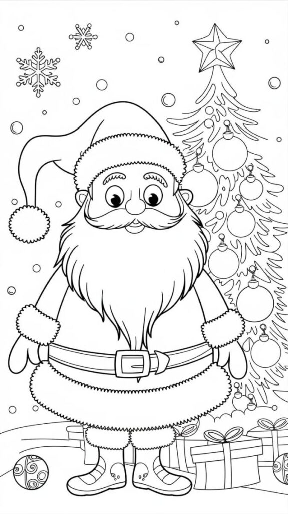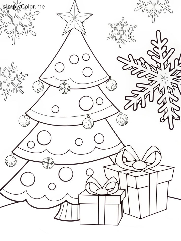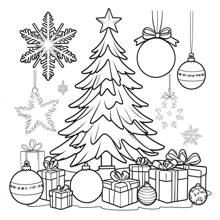 Każda choinka kolorowanka może wyglądać inaczej – od prostego konturu choinki z gwiazdką na czubku po szczegółowe ilustracje z bombkami, prezentami, śnieżynkami i Mikołajem.