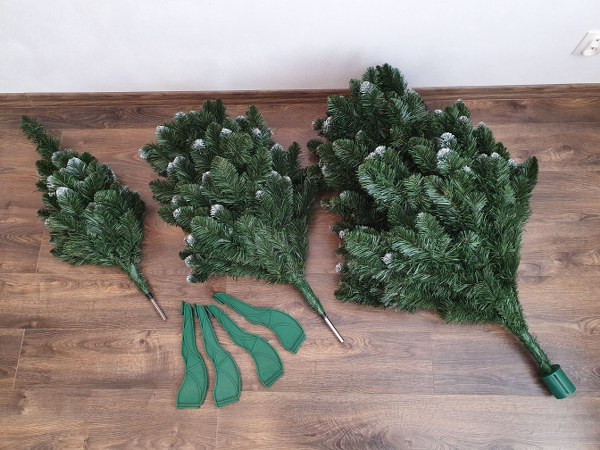 Podczas ustawiania choinki bożonarodzeniowej najważniejsze jest wybranie odpowiedniego miejsca z wystarczającą ilością przestrzeni na jej rozłożenie. Każda choinka zakupiona w naszym sklepie jest złożona i zapakowana w karton w taki sposób, aby zajmowała jak najmniej miejsca. Po otwarciu pudełka sprawdź jego zawartość. Sztuczne choinki o wysokości do 150 cm składają się z jednej części, natomiast choinki od 180 cm w górę składają się z 3 części. W zestawie oprócz samej choinki znajduje się również stojak. Rodzaj stojaka, który znajdziesz w kartonie, zależy od modelu choinki, który zamówiłeś. Otrzymasz albo metalowy stojak wraz ze śrubami do zamocowania pnia choinki, albo plastikowy stojak, który – w zależności od wysokości choinki – po złożeniu składa się z 3 lub 4 nóżek.
