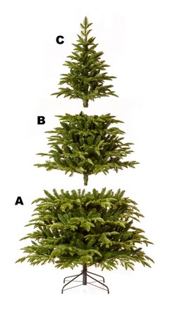 Bierzemy dolną część choinki (największy element A) i obracamy ją do góry nogami. Nogi stojaka wciskamy jedna po drugiej do wyznaczonych otworów, aż do oporu. Sprawdzamy, czy wszystkie nogi są dobrze osadzone, odwracamy choinkę i stawiamy ją stojakiem na podłodze.
