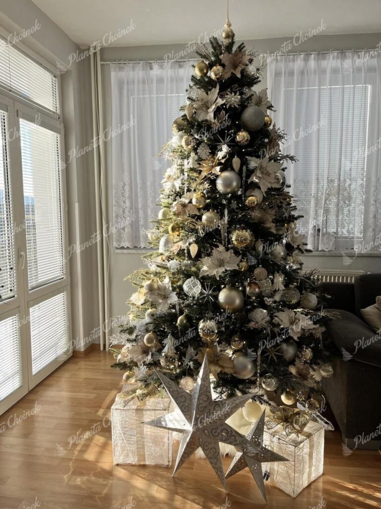 Szukasz stylu, który jest modny i ponadczasowy? Ubierana choinka w kolorystyce biało-złotej to strzał w dziesiątkę. Pasuje do każdego wnętrza – jest delikatna, ale przyciąga uwagę swoją elegancją.