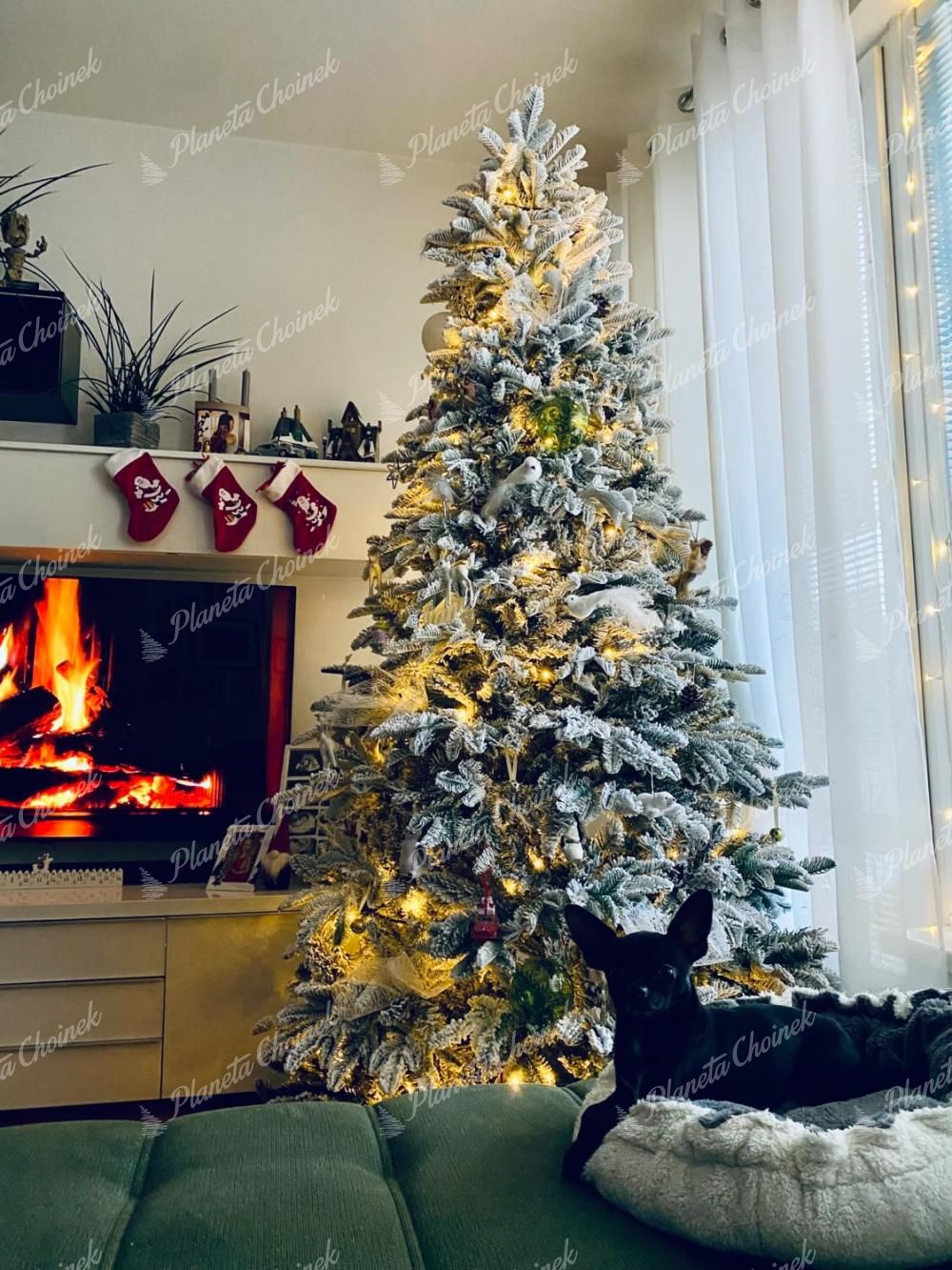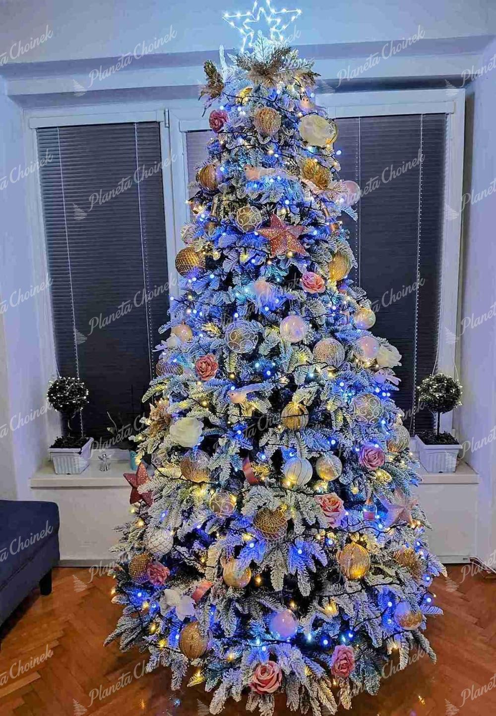 - Gęsto ośnieżona choinka biała – naturalnie zielone gałązki PE i PVC pokryte grubą warstwą śniegu