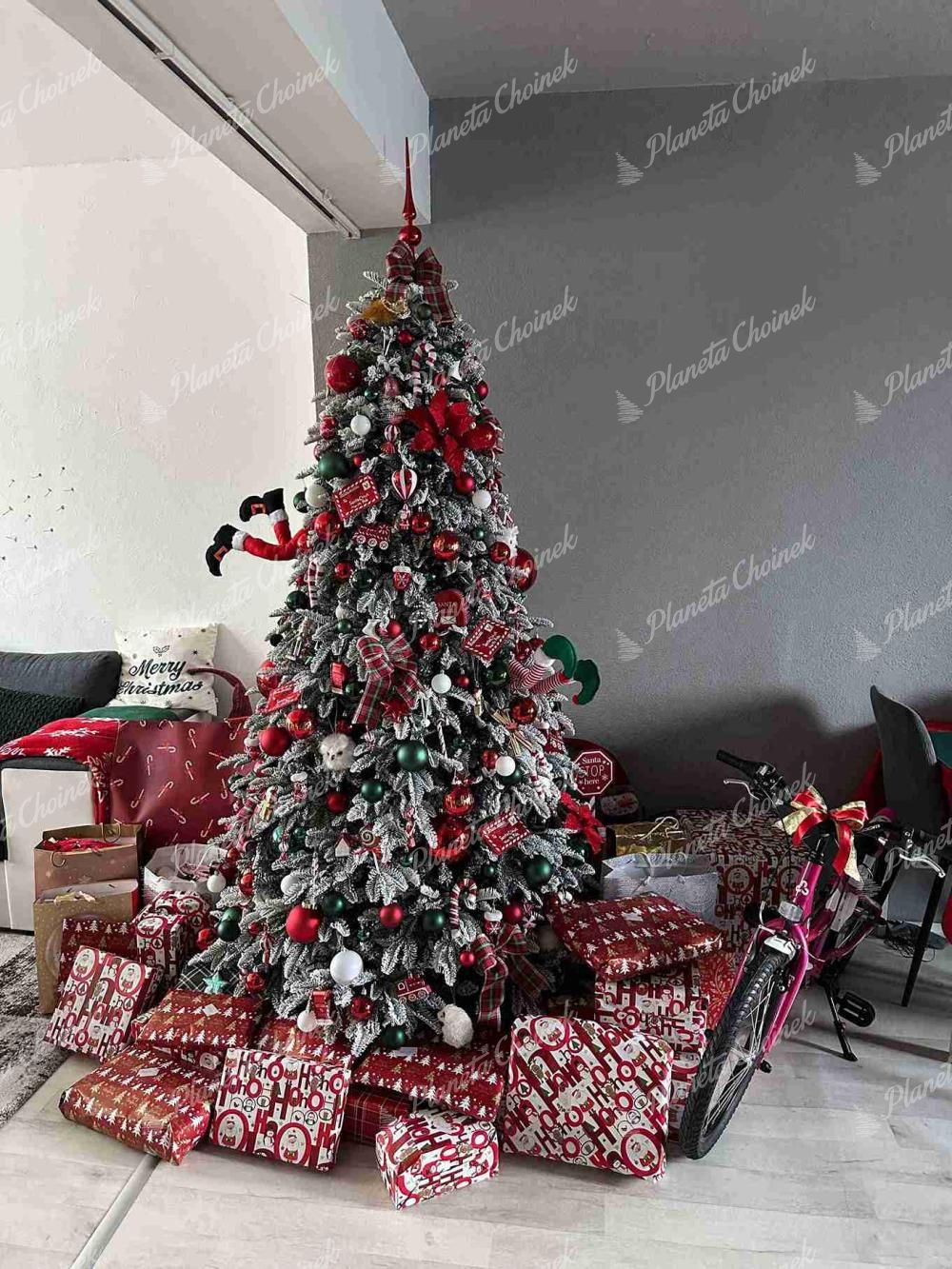 - Gęsto ośnieżona choinka biała – naturalnie zielone gałązki PE i PVC pokryte grubą warstwą śniegu