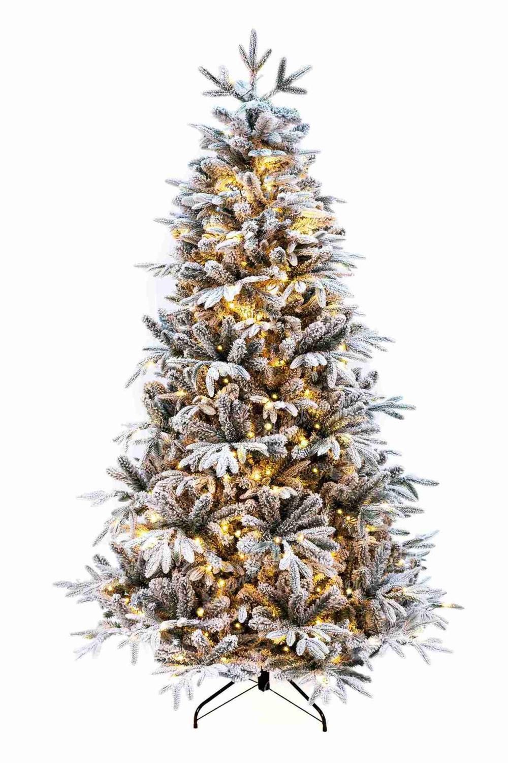 Biała sztuczna choinka jak żywa PE Jodła Syberyjska LED to elegancki, śnieżny model z realistycznym wykończeniem, który idealnie wpisuje się w klimat zimowych świąt. Gałązki choinki łączą naturalne igliwie PE z gęsto pokrytym sztucznym śniegiem igliwiem PVC. Zastosowana technologia nakładania śniegu sprawia, że jest on trwały i nie osypuje się, a biało-zielony efekt doskonale imituje prawdziwe, ośnieżone drzewko.