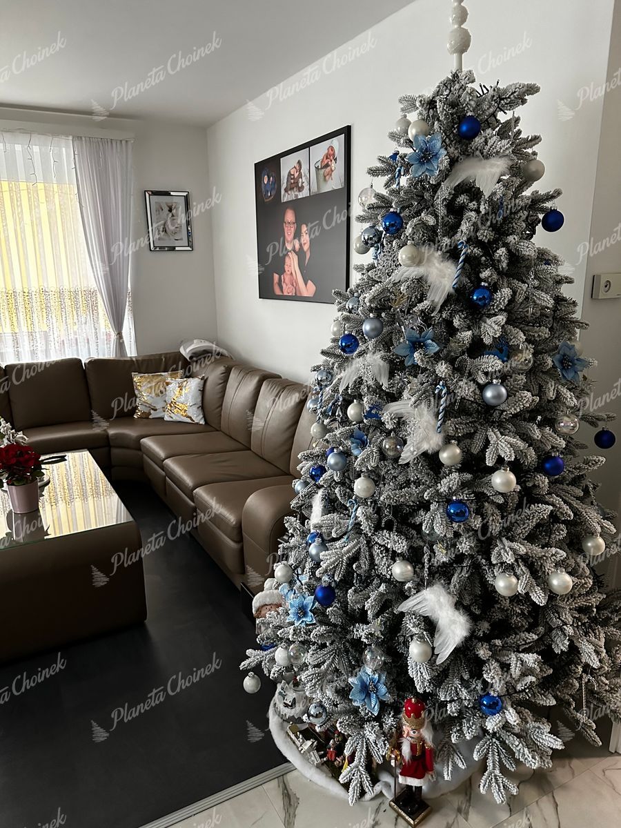 Wysokiej jakości igliwie wykonane z materiału PE rozmieszczone jest na całym obwodzie drzewka, a jego wnętrze wypełnia klasyczne PVC igliwie gęsto pokryte realistycznym śniegiem. Dzięki najnowocześniejszej technologii nakładania śniegu, pozostaje on stabilny i nie opada. To sprawia, że Świerk Królewski to niezawodna choinka biała o niezwykle naturalnym wyglądzie.
