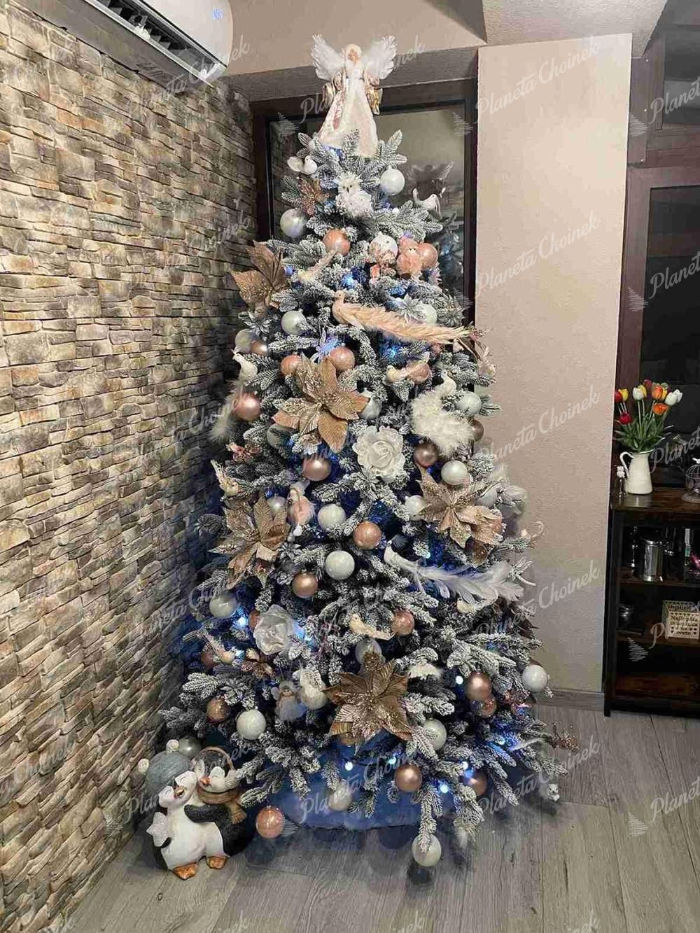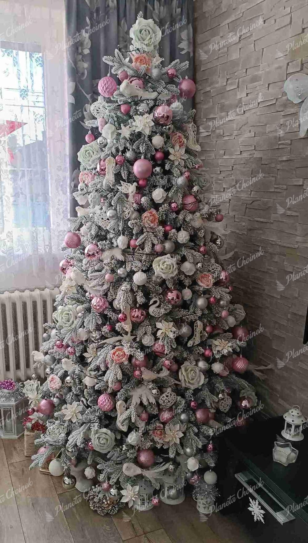 Biała choinka sztuczna PE Świerk Królewski to wyjątkowy model o eleganckim, lodowatym wyglądzie, który doskonale oddaje atmosferę zimowych, królewskich świąt. Jej unikalne biało-zielone gałązki sprawiają, że prezentuje się jak choinka sztuczna jak żywa – idealna dla każdego, kto pragnie białych, magicznych świąt.