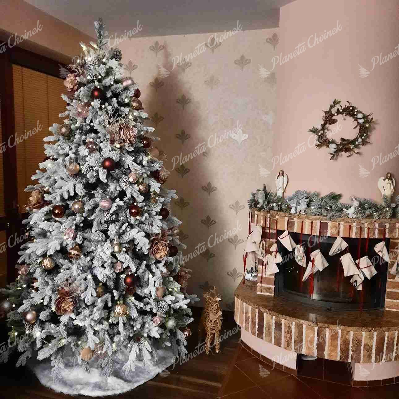 • Zielone, gęsto ośnieżone gałązki PE i PVC – tworzą wyjątkowo zimowy, naturalny wygląd