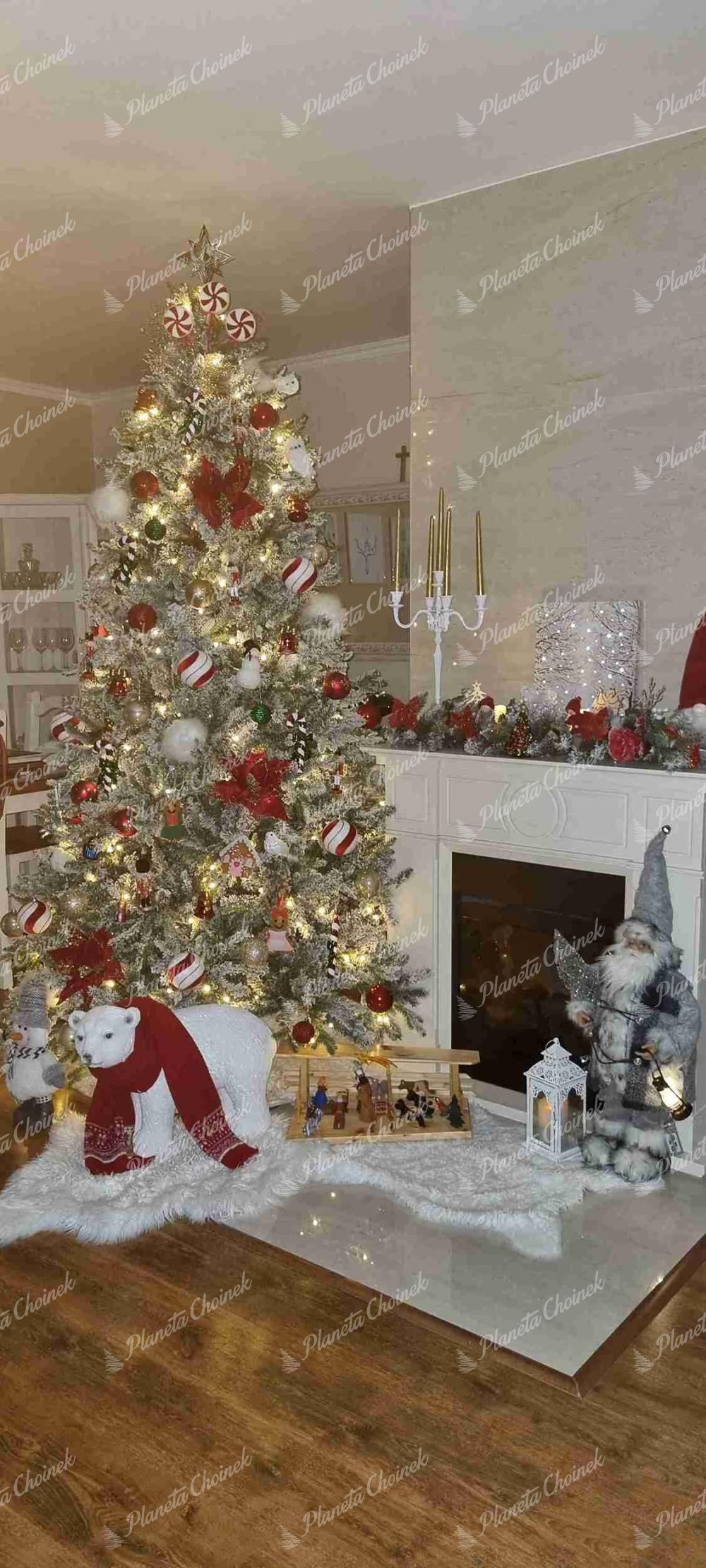 Jeśli zależy Ci na harmonijnej dekoracji, choinka biała PE Świerk Królewski LED doskonale komponuje się z ozdobami z tej samej kolekcji.