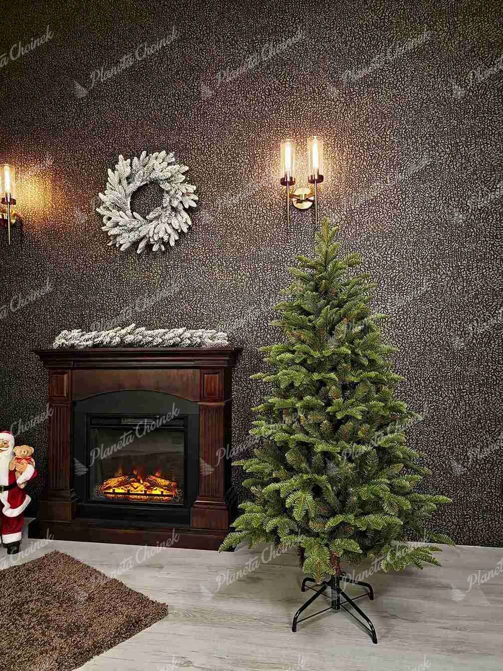 W celu uzyskania gęstego i realistycznego wyglądu, wnętrze choinki zostało uzupełnione klasycznymi gałązkami PVC w identycznym odcieniu jak igliwie PE. Dzięki temu drzewko prezentuje się niezwykle naturalnie i pełnie. Dodatkowo, nieregularnie rozmieszczone końcówki gałązek sprawiają wrażenie, jakby choinka była świeżo przyniesiona z lasu.