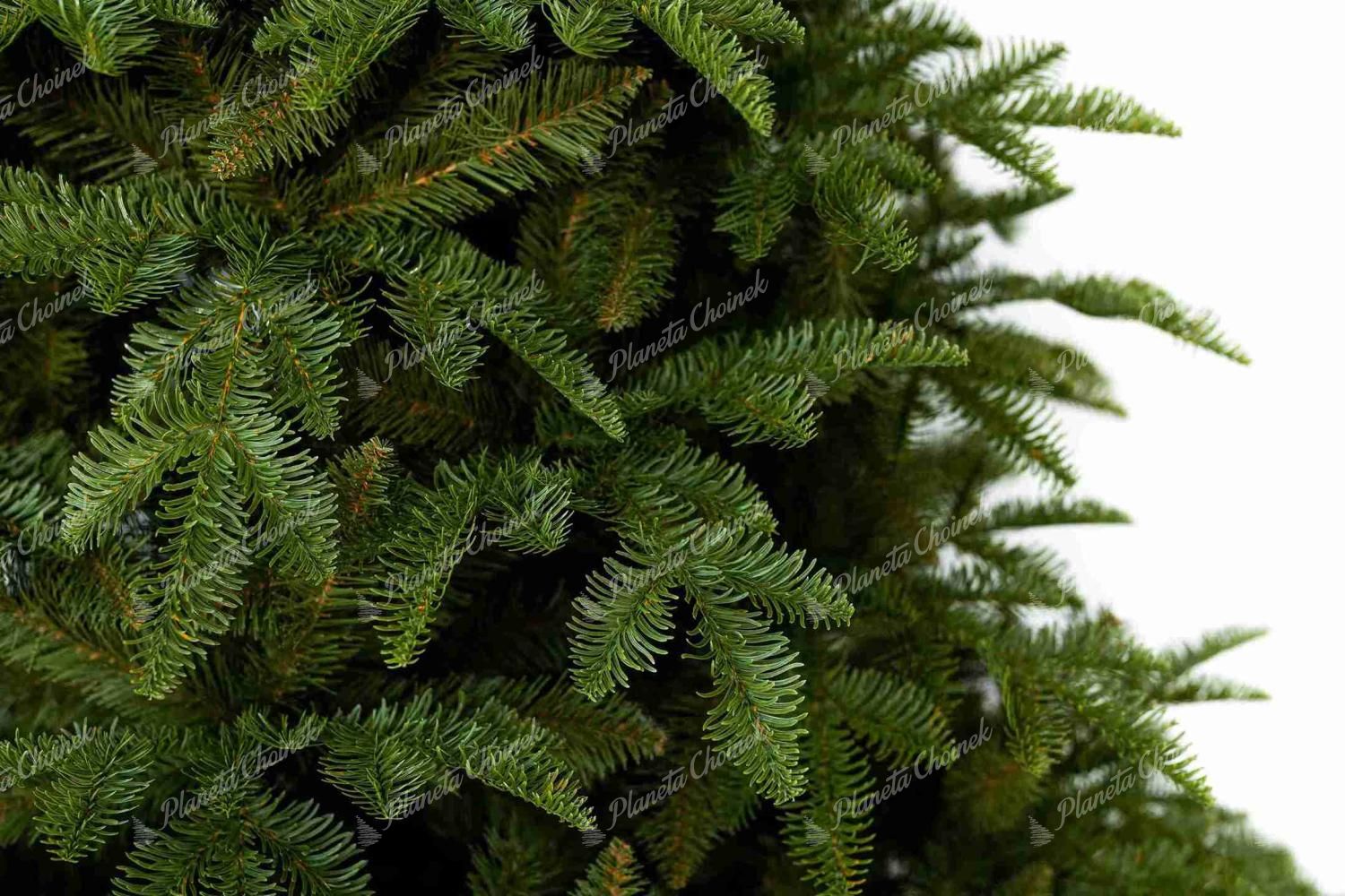 W celu uzyskania gęstego i realistycznego wyglądu, wnętrze choinki zostało uzupełnione klasycznymi gałązkami PVC w identycznym odcieniu jak igliwie PE. Dzięki temu drzewko prezentuje się niezwykle naturalnie i pełnie. Dodatkowo, nieregularnie rozmieszczone końcówki gałązek sprawiają wrażenie, jakby choinka była świeżo przyniesiona z lasu.
