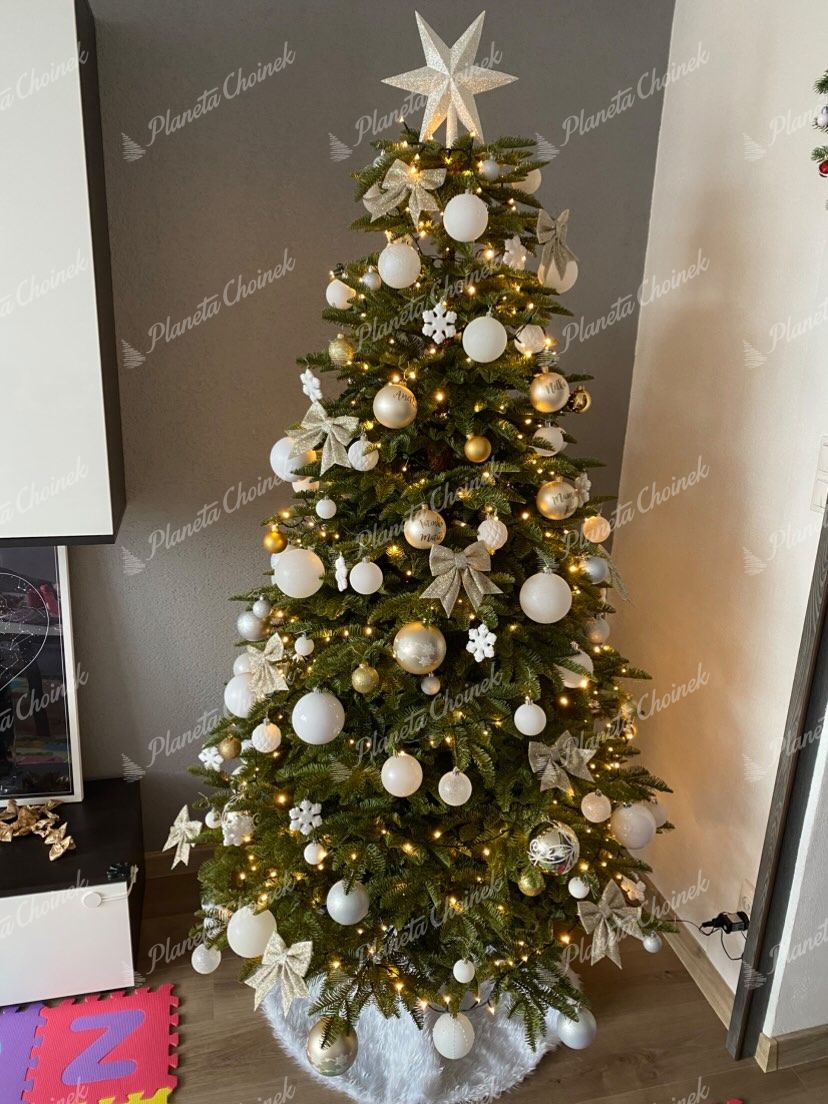 Dzięki systemowi rozkładania typu parasol, każda gałązka trafia na swoje miejsce, tworząc symetryczny i idealnie rozłożony kształt. Choinka została wykonana z trwałych materiałów PE i PVC, a solidna stalowa konstrukcja oraz metalowy stojak gwarantują stabilność i bezpieczeństwo użytkowania.