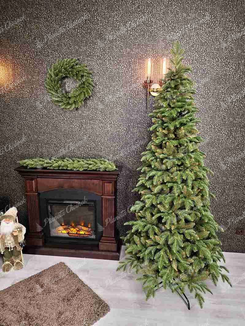 Drzewko wykonane zostało z połączenia realistycznego igliwia PE oraz tradycyjnych gałązek z PVC, co gwarantuje naturalny i gęsty wygląd. Zielone gałązki mają strukturę i kolor niemal nie do odróżnienia od prawdziwego igliwia. Dzięki wąskiemu kształtowi, choinka jest idealna do małych mieszkań, korytarzy, gabinetów czy innych ograniczonych przestrzeni.