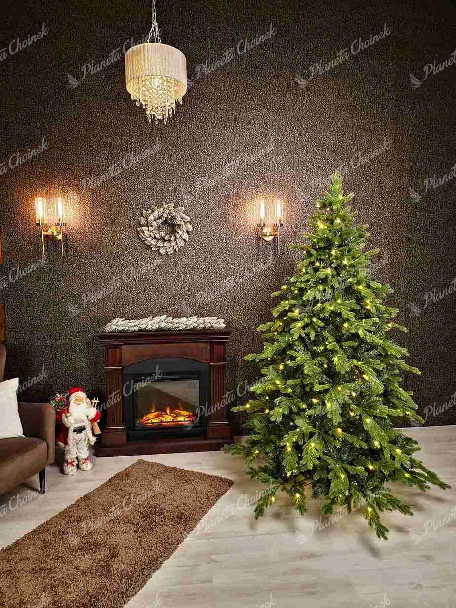 Choinka sztuczna jak żywa PE Świerk Ekskluzywny z lampkami LED zachwyca swoim naturalnym wyglądem i funkcjonalnością. Dzięki nieregularnie rozmieszczonym gałązkom PE, które imitują naturalny wzrost drzew iglastych, drzewko wygląda jak żywe. Dodatkowo, choinka łączy większe i mniejsze ciemnozielone gałązki PE, co podkreśla jej realistyczny i elegancki charakter.