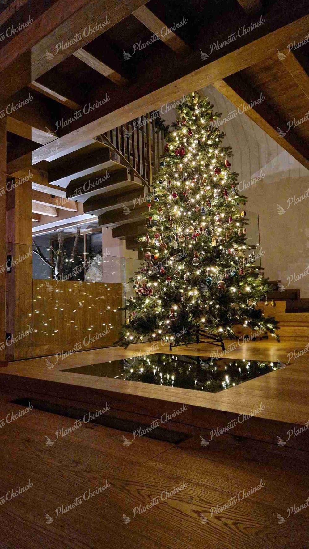 Wnętrze choinki zostało wypełnione klasycznymi gałązkami z PVC, co zapewnia wyjątkowo gęsty i bujny wygląd. Grubszy typ igliwia oraz wystające gałązki sprawiają, że choinka prezentuje się okazale i majestatycznie z każdej strony.