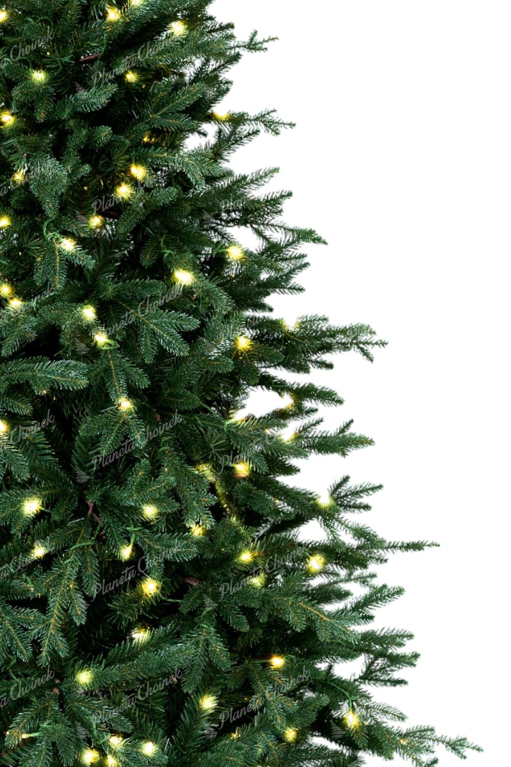 Choinka została wyposażona w ciepłe oświetlenie LED, które jest fabrycznie wplecione między gałązki. Dzięki temu oszczędzasz czas i nie musisz samodzielnie montować lampek. Oświetlenie LED pozwala na nawet 70% oszczędności energii w porównaniu z tradycyjnymi żarówkami.