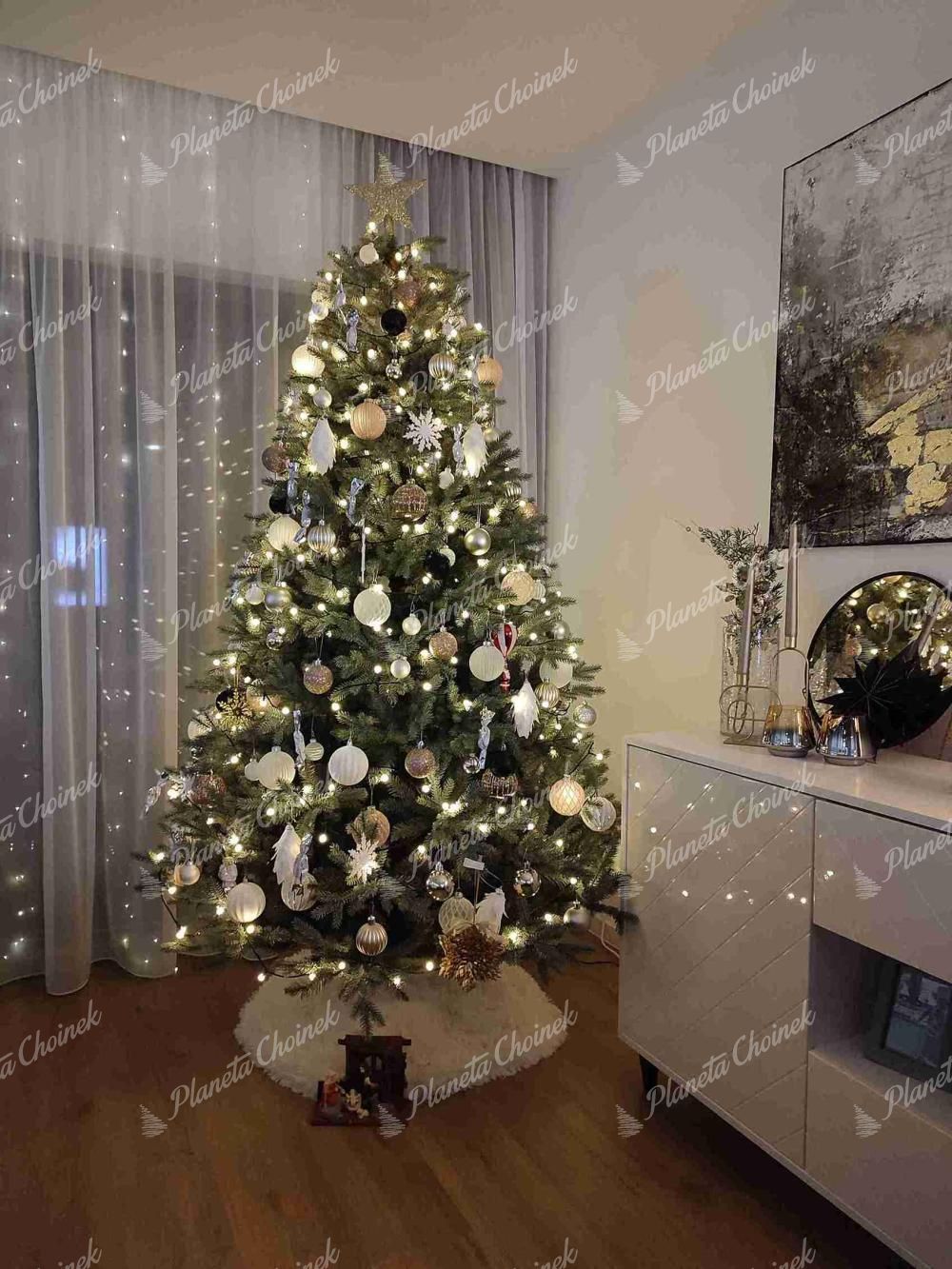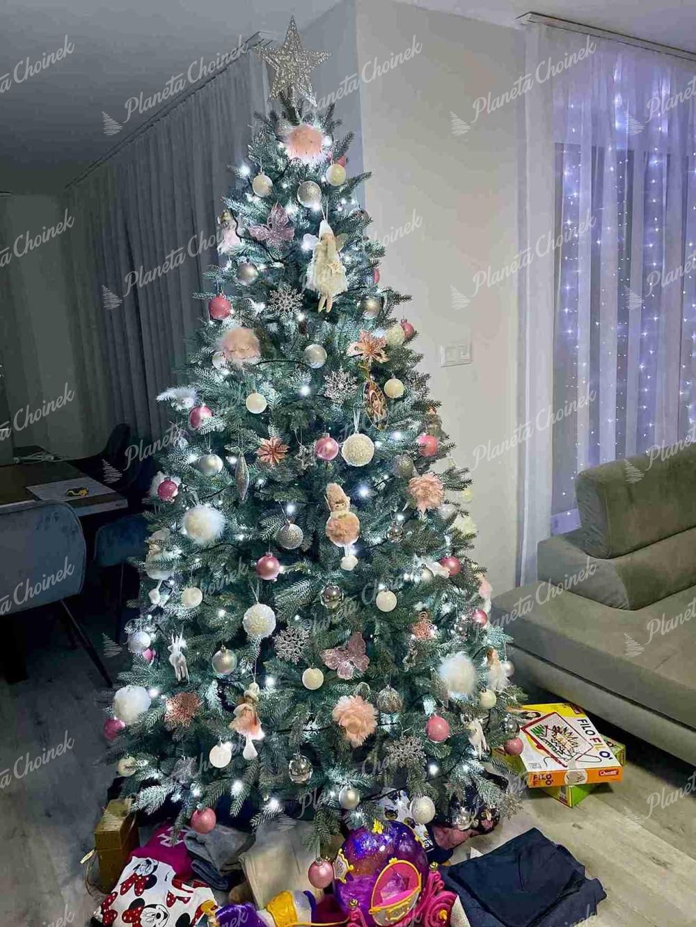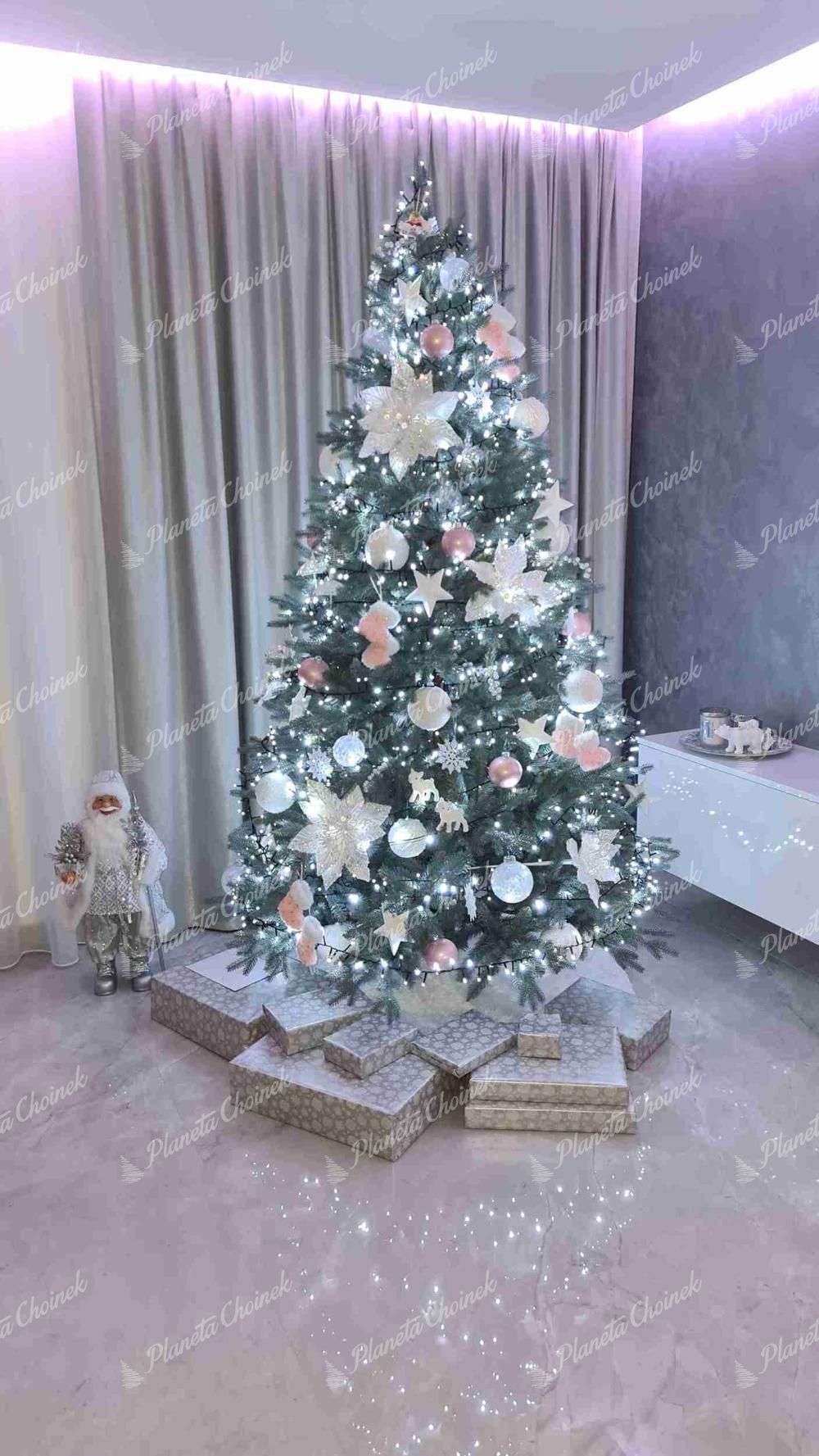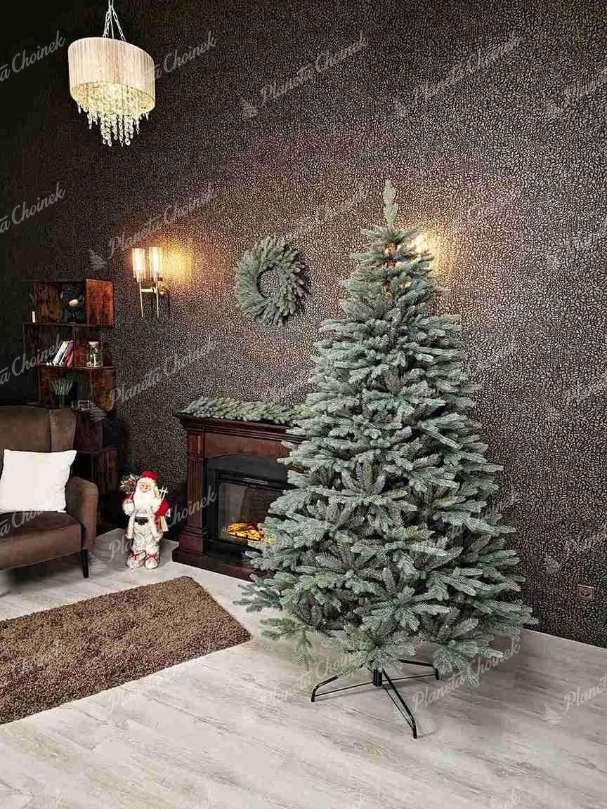 Choinka sztuczna jak żywa PE Świerk Lodowy to wyjątkowy model, który przyciąga uwagę swoją oryginalną kolorystyką i eleganckim, nowoczesnym kształtem. Gałązki z realistycznego igliwia PE w unikalnym, lodowo-srebrnym odcieniu sprawiają, że choinka wygląda niezwykle stylowo i subtelnie połyskuje, przywodząc na myśl mroźne, zimowe pejzaże.