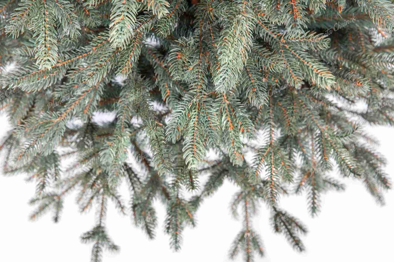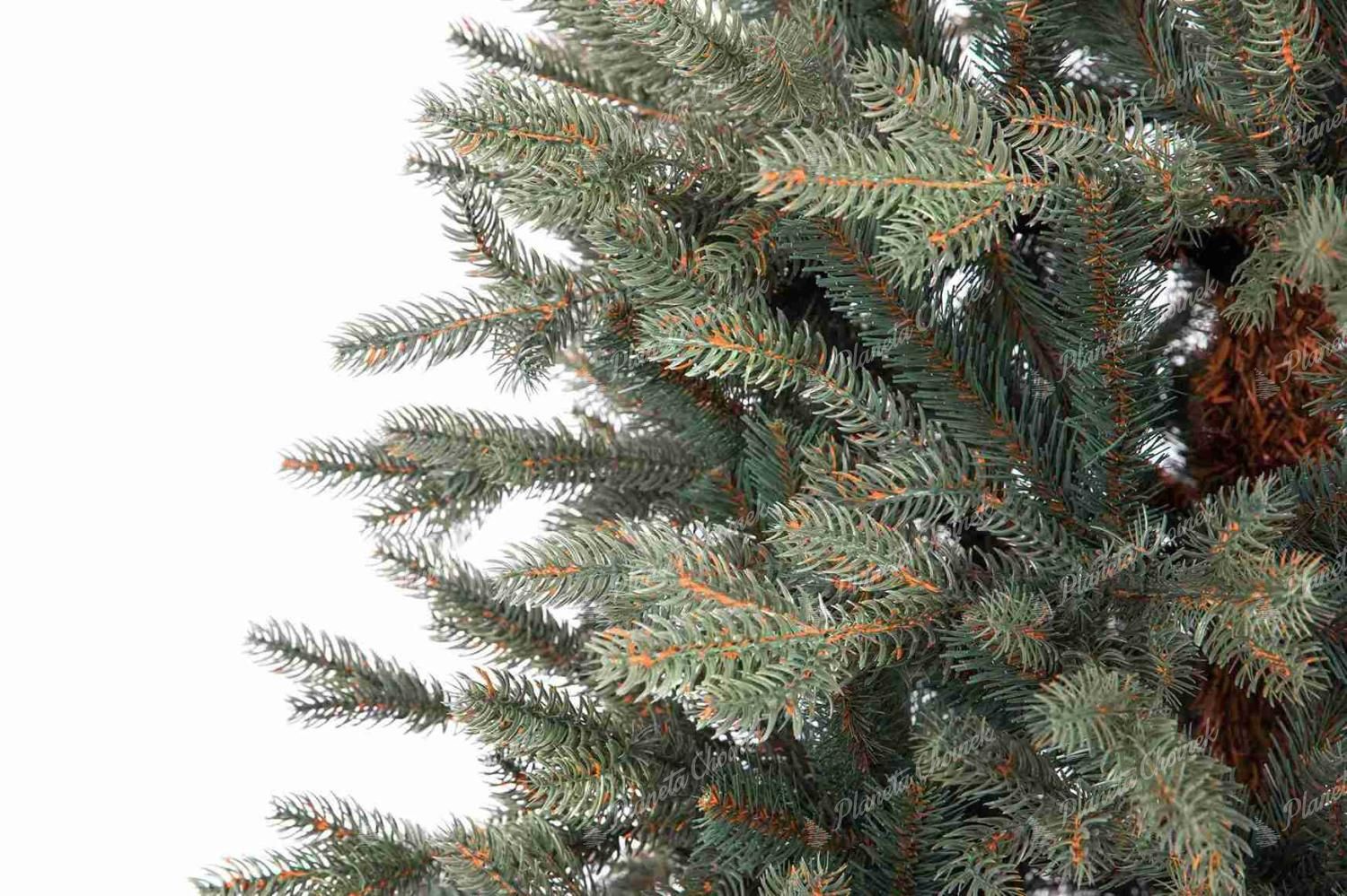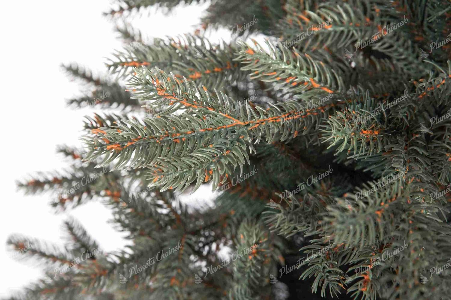 Model wyróżnia się lodowo-srebrnym PE igliwiem, które pięknie odbija światło i przywodzi na myśl skute lodem gałązki świerku. Realistyczne końcówki gałązek wykonane z PE zostały uzupełnione wewnątrz drzewka klasycznymi, zielonymi gałązkami PVC, co nadaje choince wyjątkową gęstość i objętość.