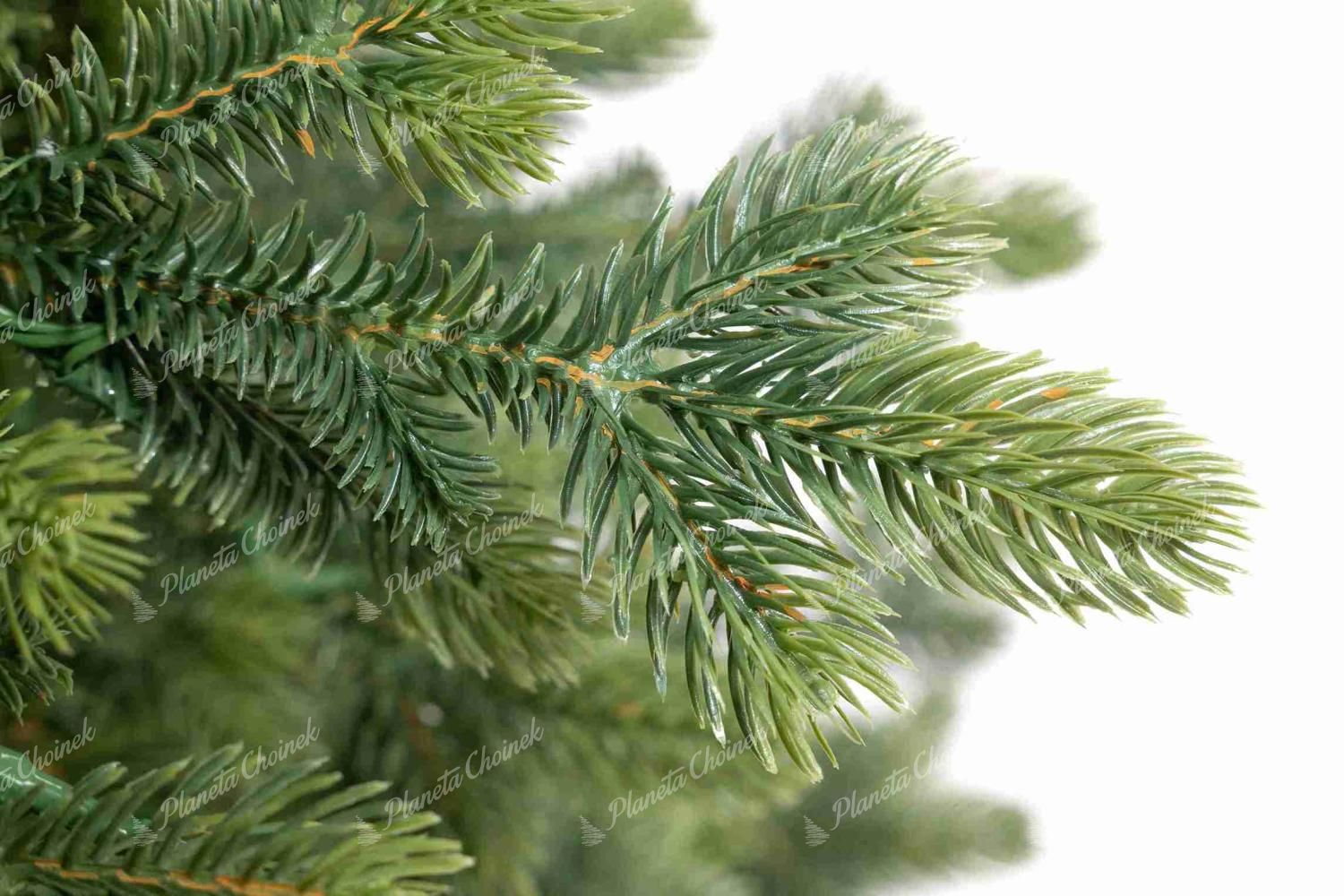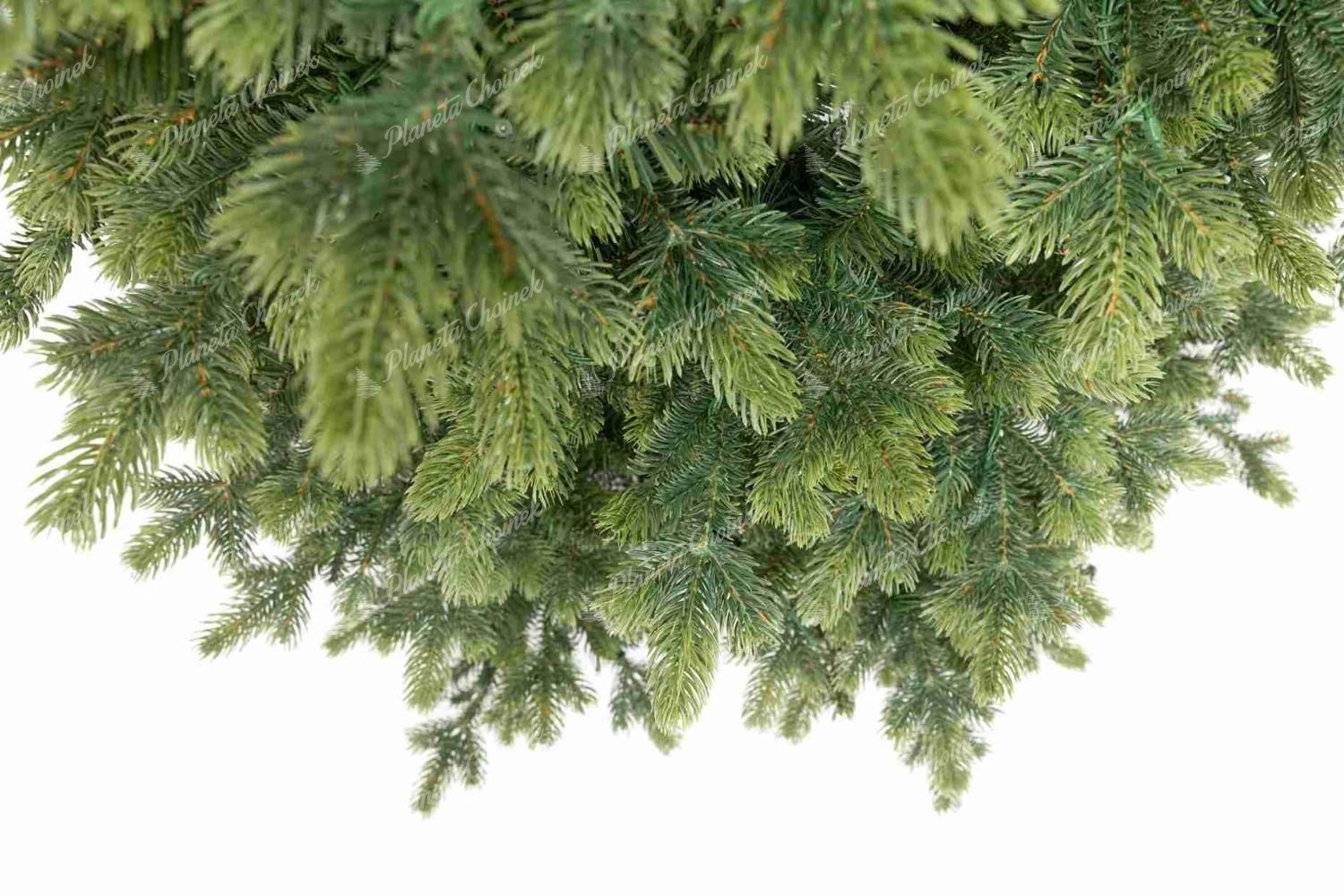 Charakterystyczną cechą tego modelu jest naturalne igliwie w odcieniach od ciemnej po jasną zieleń, które nadaje choince świeży i realistyczny wygląd. Gałązki wykonane z wysokiej jakości igliwia PE po zewnętrznej strane, uzupełnione są wewnątrz o klasyczne gałązki PVC, co gwarantuje gęstość i pełnię formy.