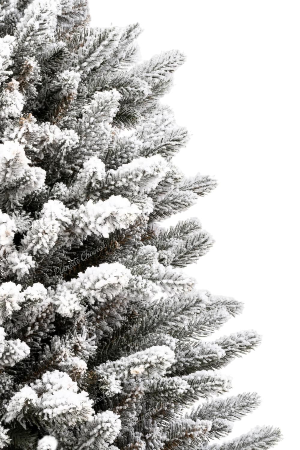 Charakterystyczne śnieżnobiałe końcówki gałązek i naturalna zielono-biała kolorystyka tworzą wyjątkowo realistyczny wygląd drzewka. Igliwie PE po obwodzie choinki zostało uzupełnione o zasypane sztucznym śniegiem PVC gałązki w środku, co nadaje jej pełnej i gęstej struktury. Dzięki zastosowaniu najnowszych technologii śnieg nie osypuje się z gałązek.