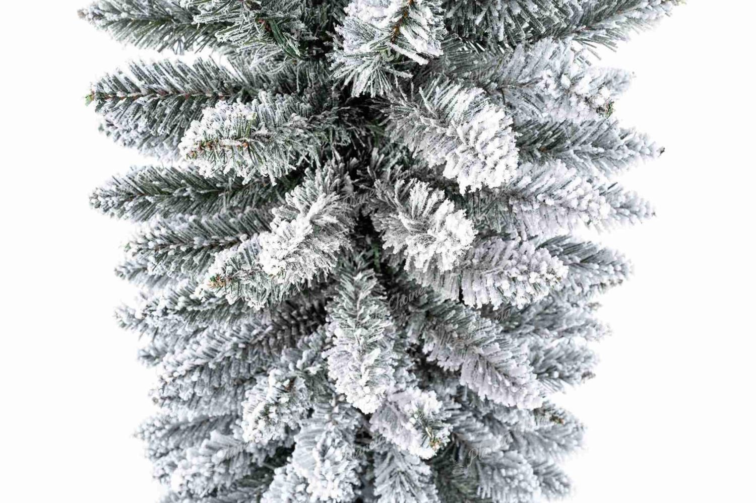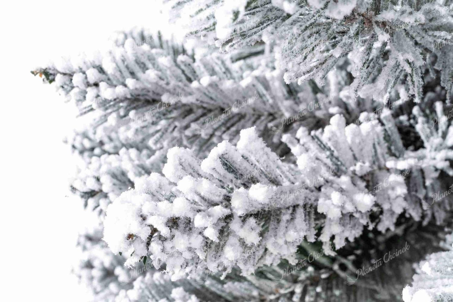 Zastosowane wysokiej jakości PVC gałązki mają naturalnie zielony odcień, który pod warstwą nowoczesnego, sztucznego śniegu zyskuje wyjątkowy wygląd. Śnieg jest nakładany z użyciem nowoczesnych technologii, co zapewnia jego trwałość i estetykę – nie osypuje się podczas użytkowania. Minimalne opady mogą wystąpiť jedynie przy pierwszym rozkładaniu choinki.