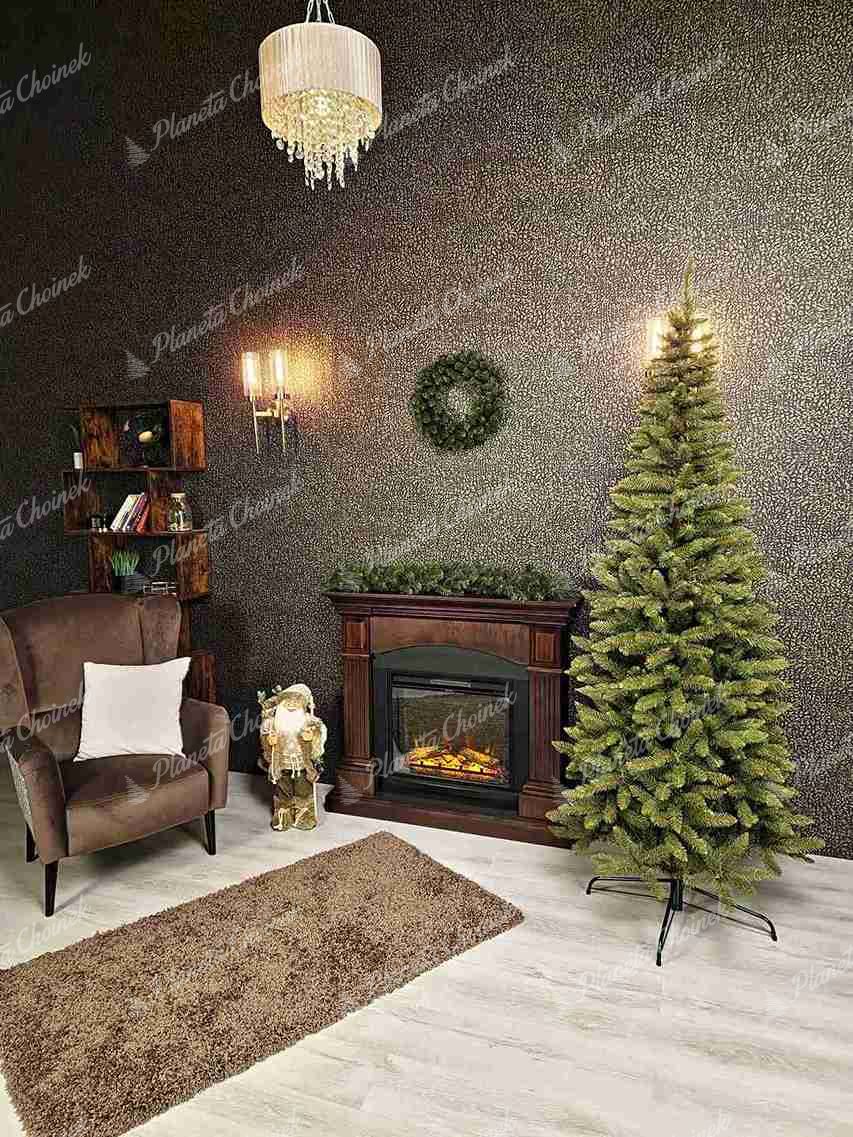 Choinka została wykonana z wysokiej jakości gałązek PVC w naturalnym odcieniu zieleni, co zapewnia jej klasyczny i elegancki wygląd. Gęsto rozmieszczone gałązki tworzą pełną i atrakcyjną sylwetkę, idealną do zawieszania ulubionych ozdób świątecznych.