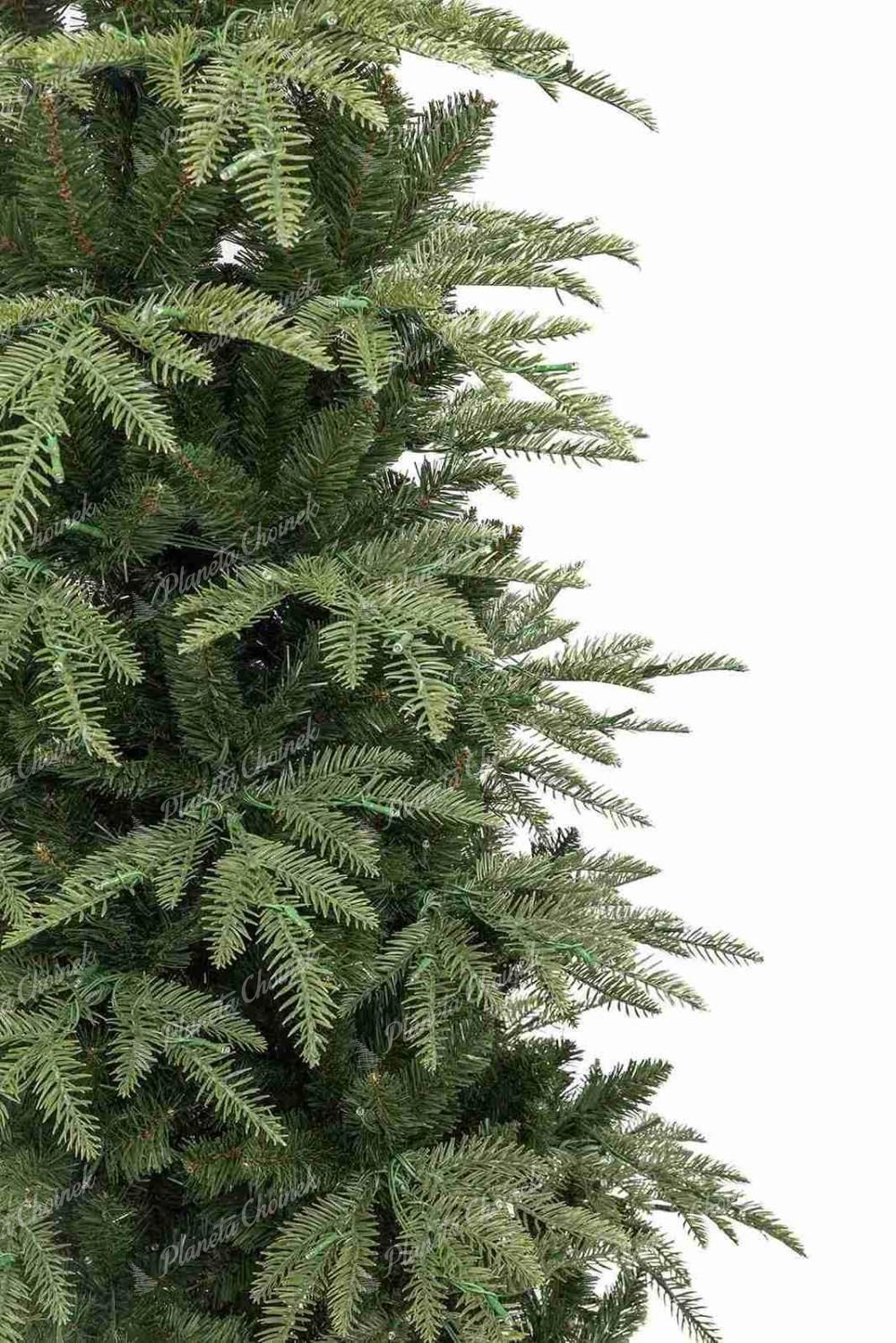 Choinka została wykonana z połączenia trójwymiarowego igliwia PE na zewnątrz oraz klasycznych gałązek z PVC w środku, co nadaje jej pełniejszy i gęsty wygląd. Parasolowy system rozkładania gwarantuje łatwy montaż i perfekcyjnie symetryczny kształt.