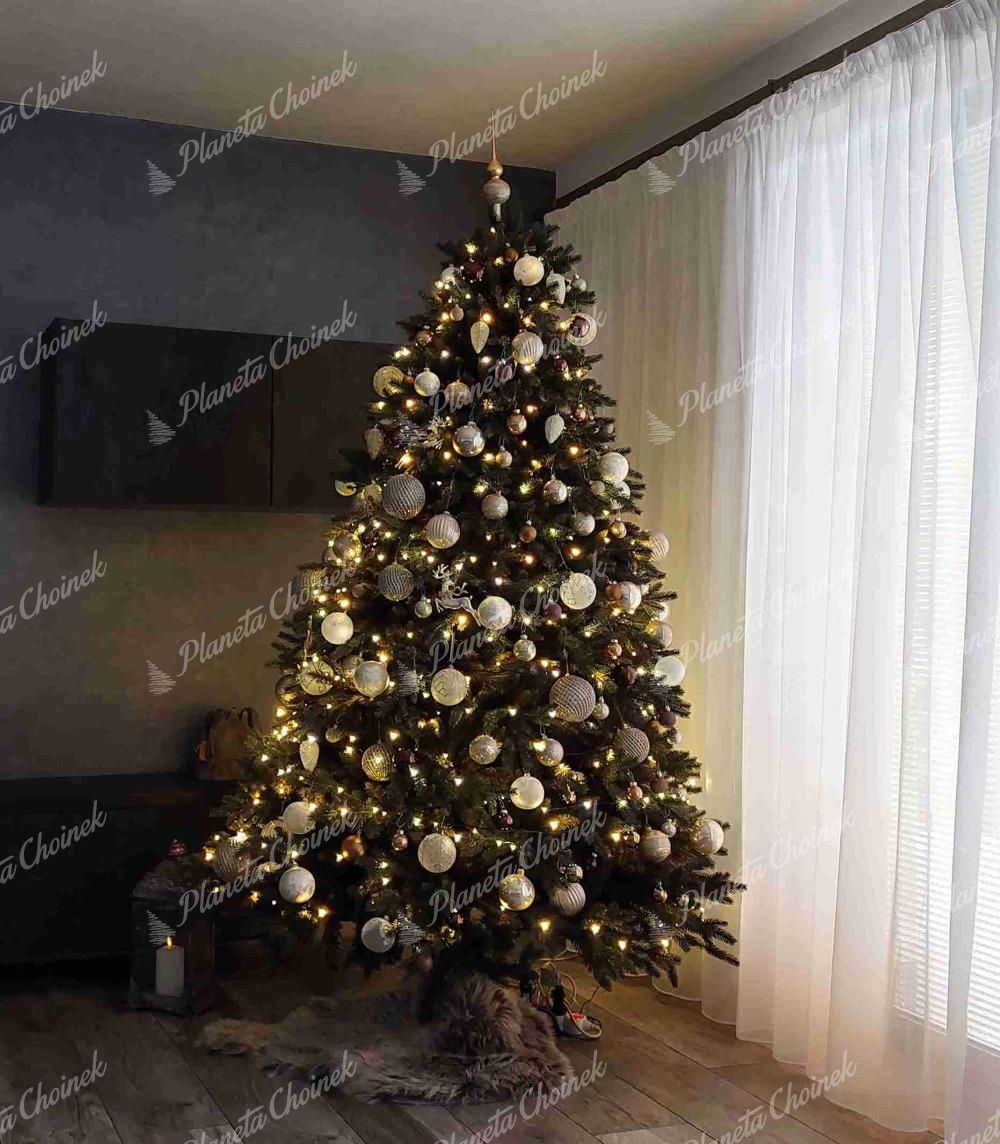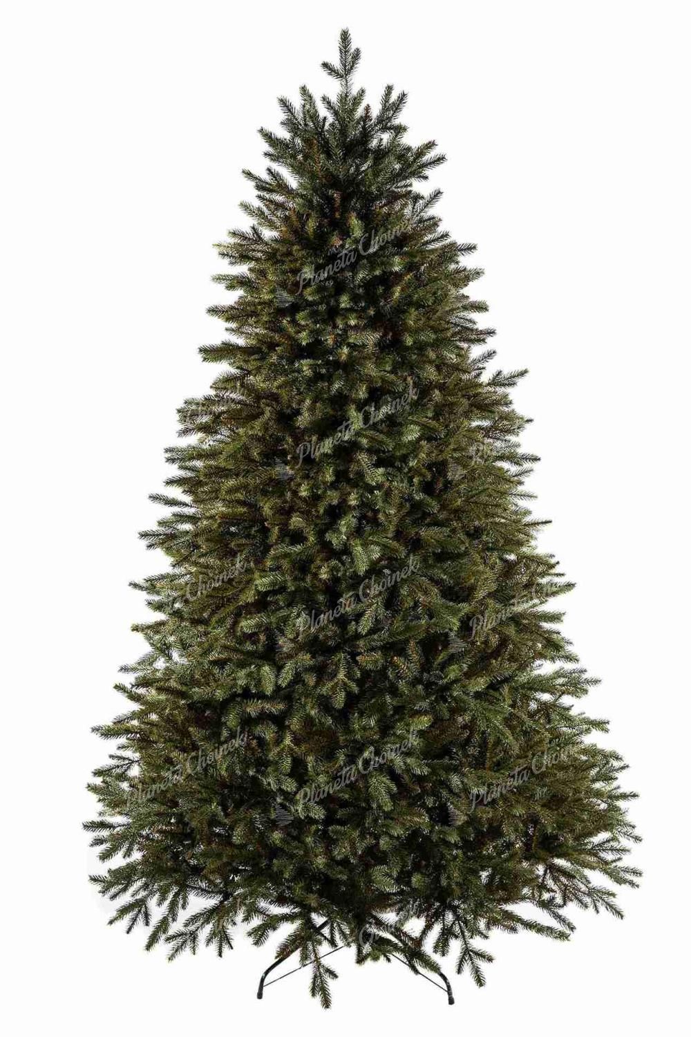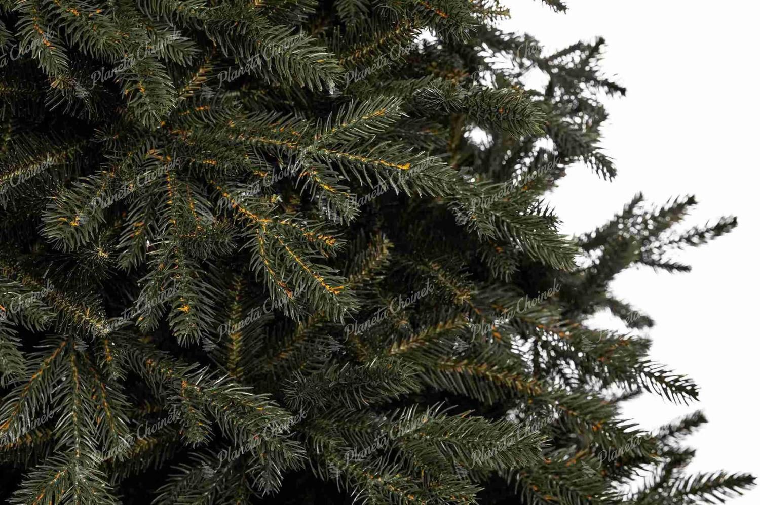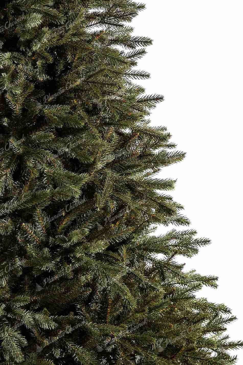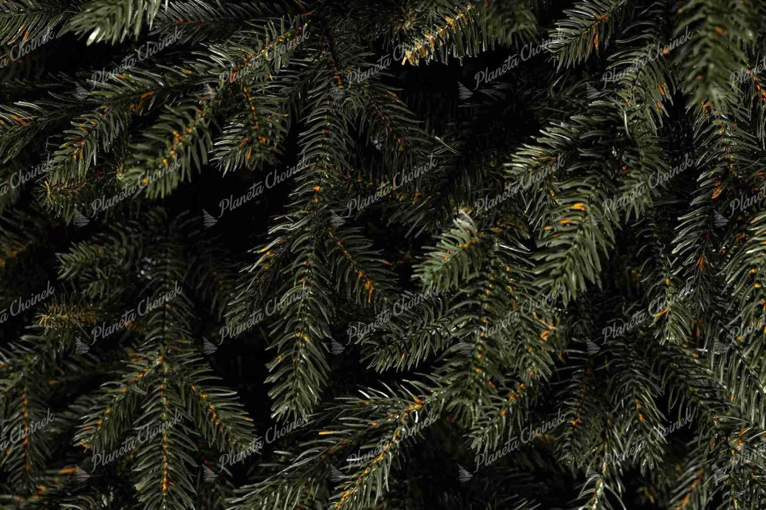 Na końcu każdej gałązki znajduje się aż 6 końcówek PE, co daje nawet o 30% więcej gałązek niż w wersji klasycznej. Gałązki wykonane są z wysokiej jakości igliwia PE w ciemnozielonym odcieniu – perfekcyjnie odwzorowują naturalny wygląd świerku. Środek drzewka został uzupełniony o gęste PVC igliwie, a brązowy pień dodaje całości realistycznego efektu.