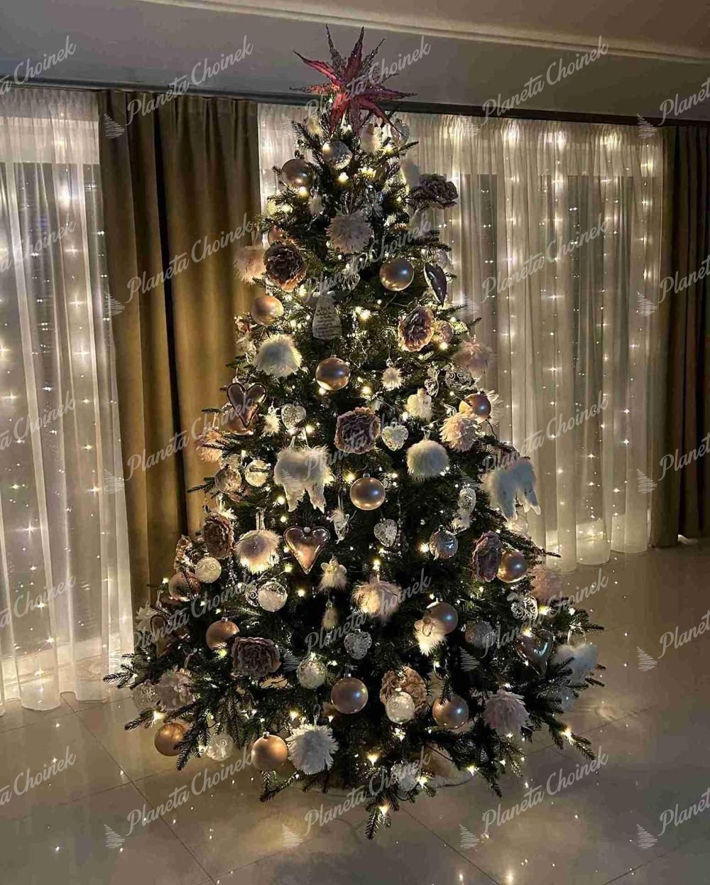 Model wyposażony jest we wbudowane, fabrycznie rozmieszczone LED-owe oświetlenie w ciepłej bieli. Liczba punktów świetlnych dostosowana jest do wysokości choinki.