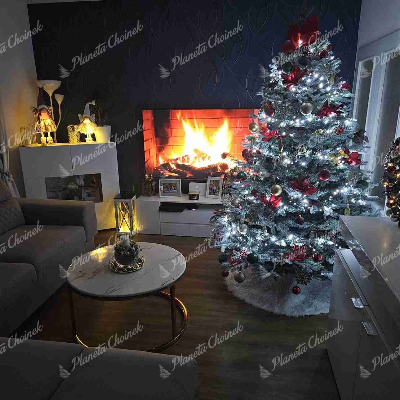 Dzięki swojej rozłożystości i dużej liczbie gałązek, model PE Świerk Srebrny należy do kategorii choinek bardzo szerokich, przez co idealnie prezentuje się w przestronnych wnętrzach – salonach, hotelach czy reprezentacyjnych pomieszczeniach.